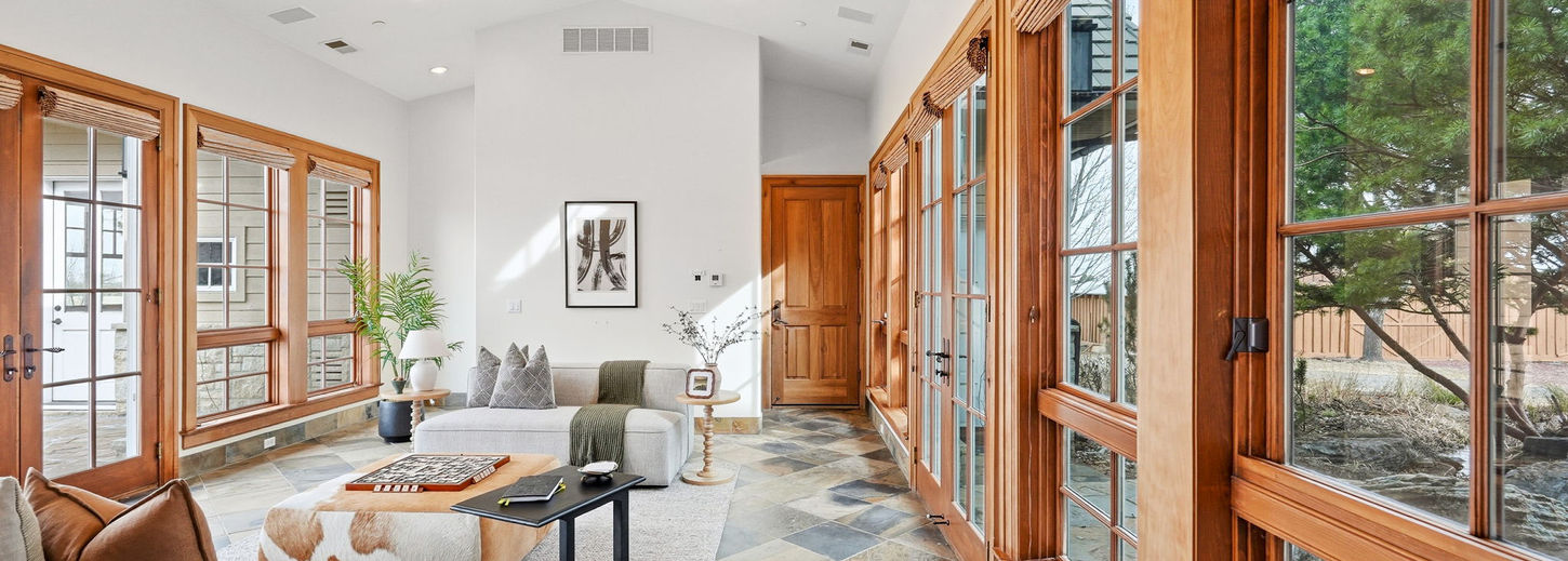 Welcome to a truly one-of-a-kind property, inside and out. Upon entrance through the gate, a tree-lined drive sets the tone—its canopy lush and vibrant in both summer and fall. The circular driveway makes the arrival all the more elegant. As you approach, you’ll also notice the fantastic mountain vistas and serenity this property offers. Sitting on just over five acres, this custom-built home, designed by renowned architect Kyle Callahan, is truly elegant, with an emphasis on nature. Expansive windows throughout flood the home with rich, golden light and offer magnificent views of the meadow and mountains—you may never want to leave.